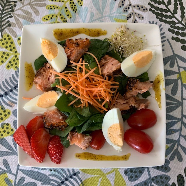 | salade van wortel, rode biet, bulgur en gerookte zalm | 48 |